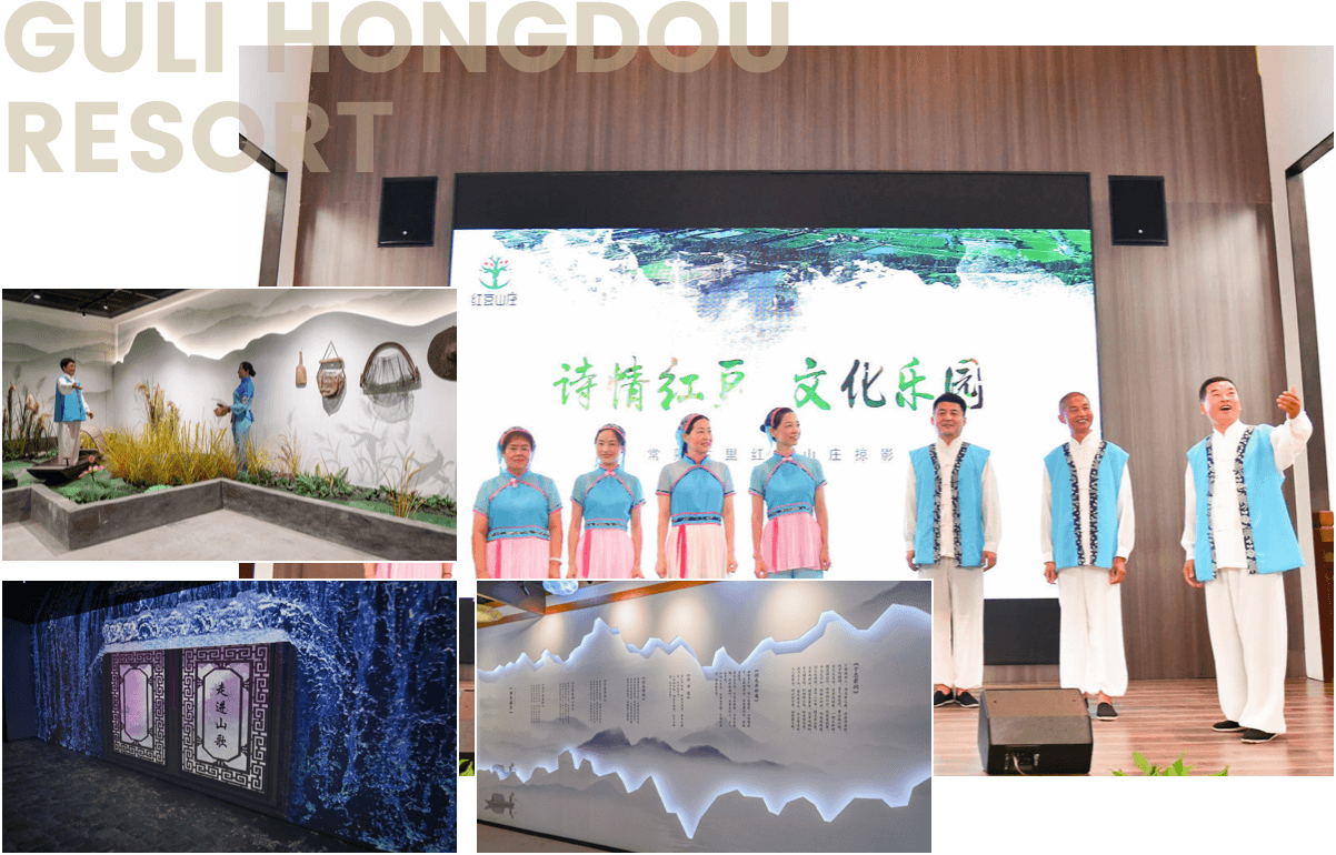 为了进一步发掘弘扬原生态文化,古里红豆山庄以当地农民讴歌生活、抒发情感的民间口头艺术为素材,在山歌馆内建起山歌剧场、山歌陈列室、山歌模拟厅,用现代声光电的手法进行情景展示,让您踏进山歌馆,犹如穿越千百年历史,感受山歌带给您的身心愉悦和震憾。